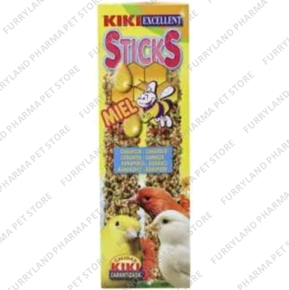Kiki sticks Parakeet Orange / Banana 2 units. Kiki Excellent sticks are for cage birds, an ideal way to keep them in shape and a tasty and easily digestible food. These sticks provide them with a complete and balanced diet as well as an extra supply of vitamin A that accentuates the brightness of the plumage. Bars made with seeds and fruits, to hang in the cage, rich in vitamins. 60 grams of product 2 Units per box.