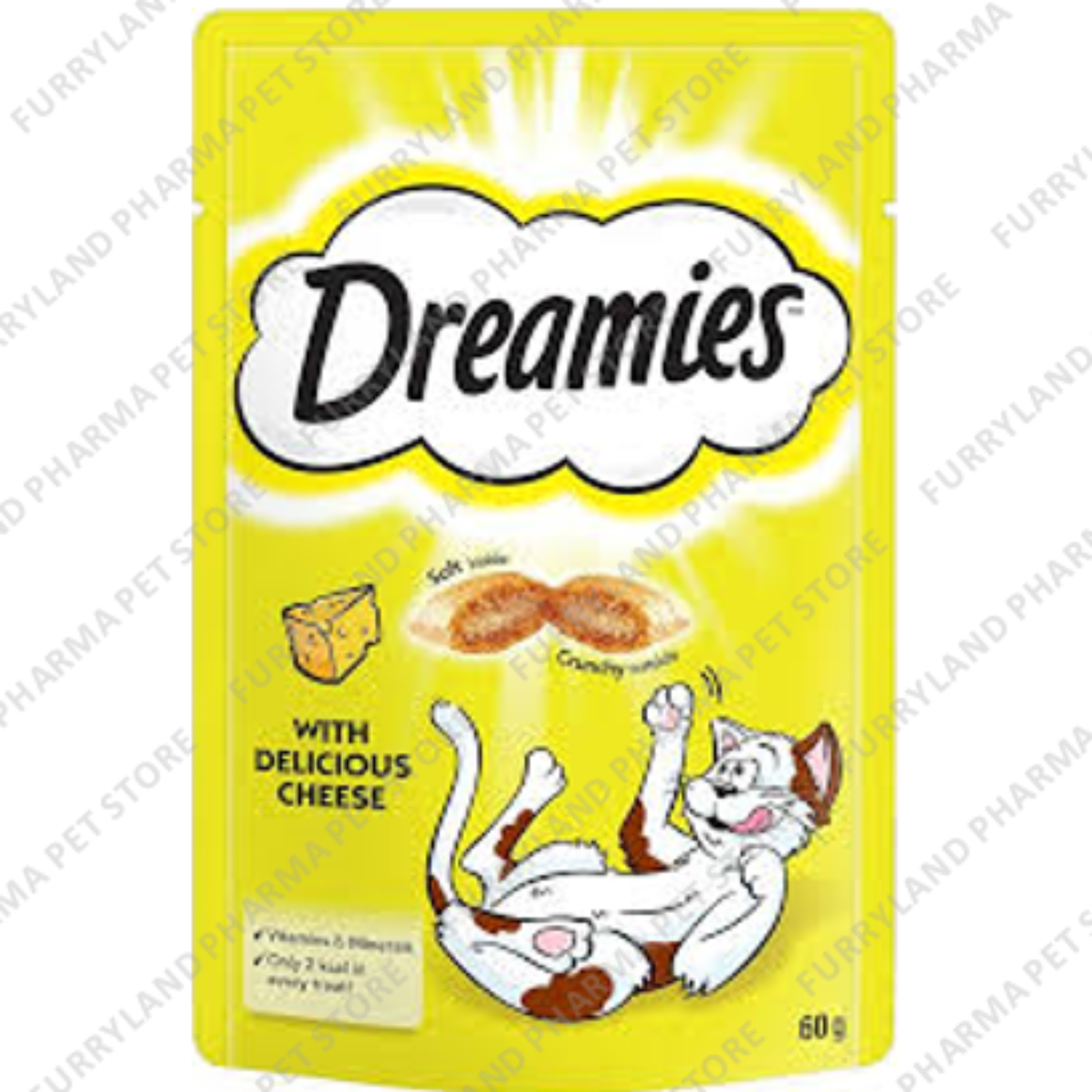 • Cats go mad for the irresistible taste of DREAMIES™ cat treats! Dual textured cat treats with Delicious Cheese. Deliciously crunchy on the outside, soft on the inside; cats simply can’t resist the great taste of DREAMIES™ treats. Surprisingly, we don’t use a secret ingredient or magic to make them this delicious. We’ve just jam-packed lots of the yummy things cats love into these tasty treats. So go on, give the bag a shake and watch your cat come running..